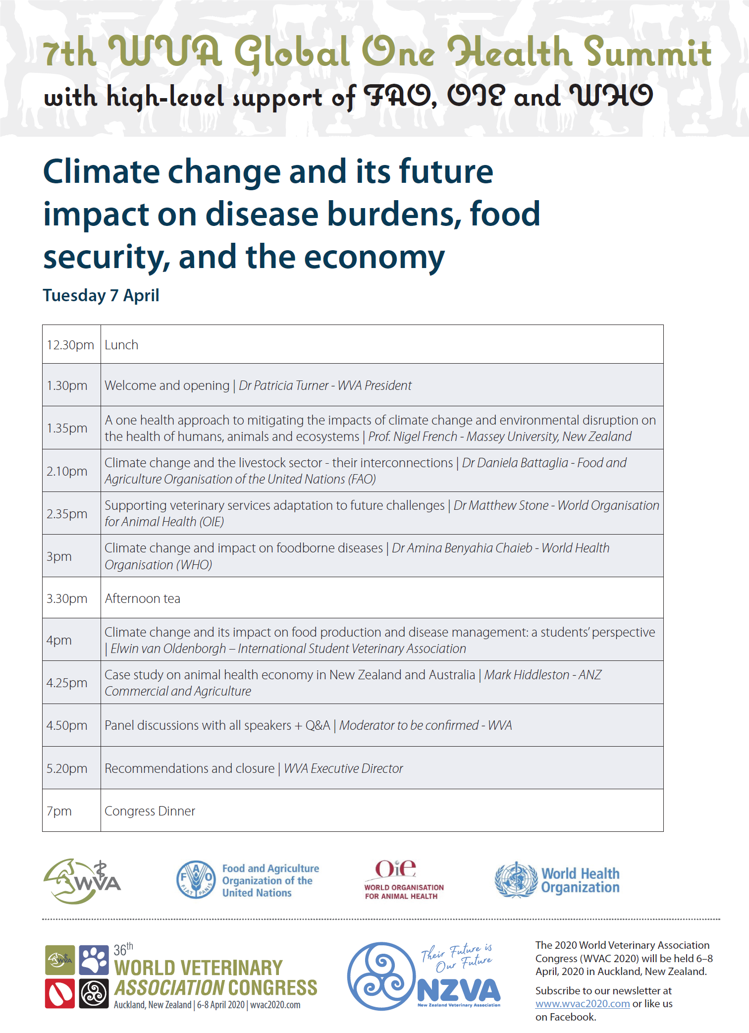 7th WVA Global One Health Summit with high-level support of FAO, OIE and WHO will focus on the topic of Climate change and its future impact on disease burdens, food security, and the economy.