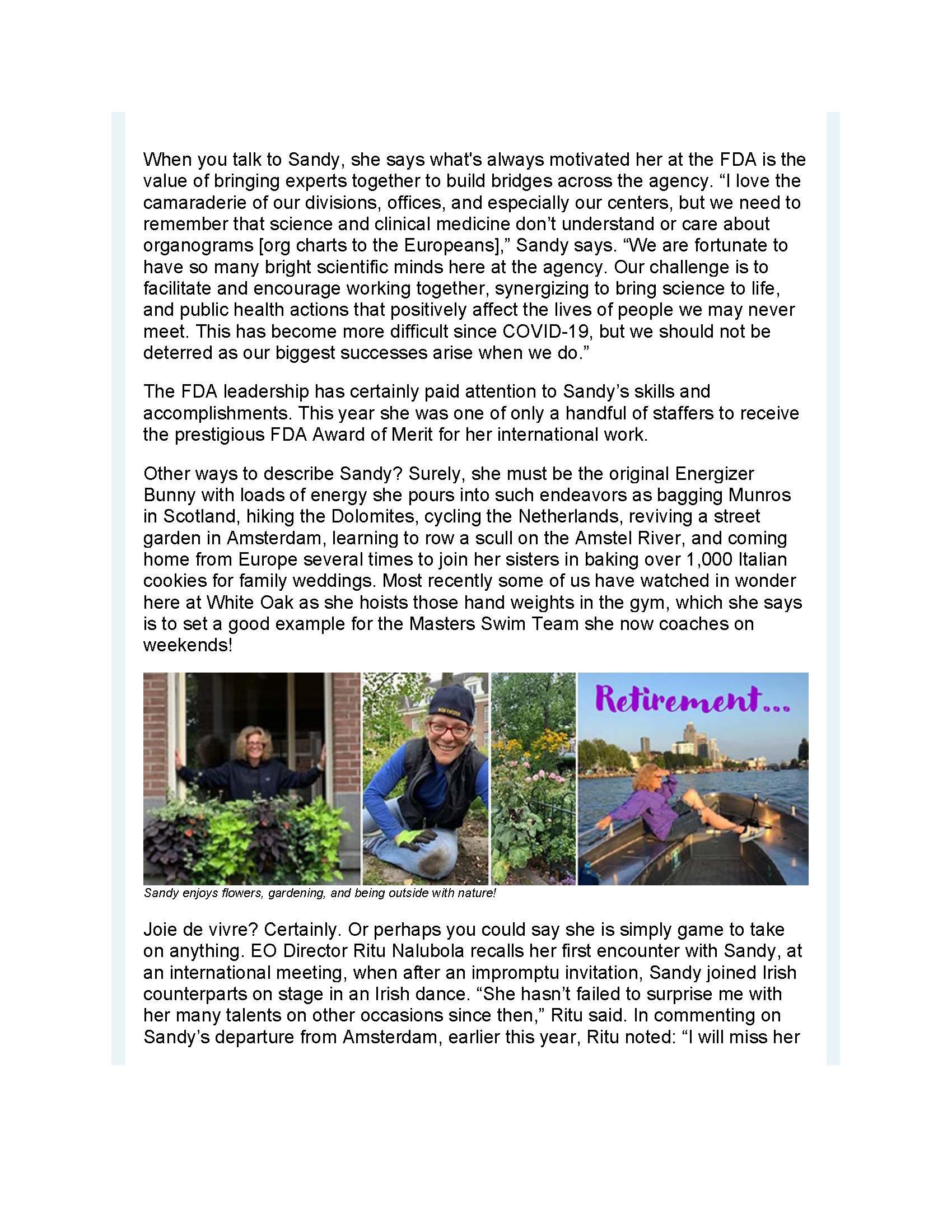 In celebration of One Health Day on November 3, the U.S. Food and Drug Administration's Office of Global Policy and Strategy (OGPS) included a special One Health Section in their monthly newsletter to highlight One Health activities. Leveraging science, technology, and innovation, the FDA One Health initiative seeks to: create a multidisciplinary mindset for internal and external FDA stakeholders; provide infrastructure to sustain the effort; engage governmental partners in coordination, communication, outreach, and inclusivity; and reach globally to expand the FDA’s One Health impact.