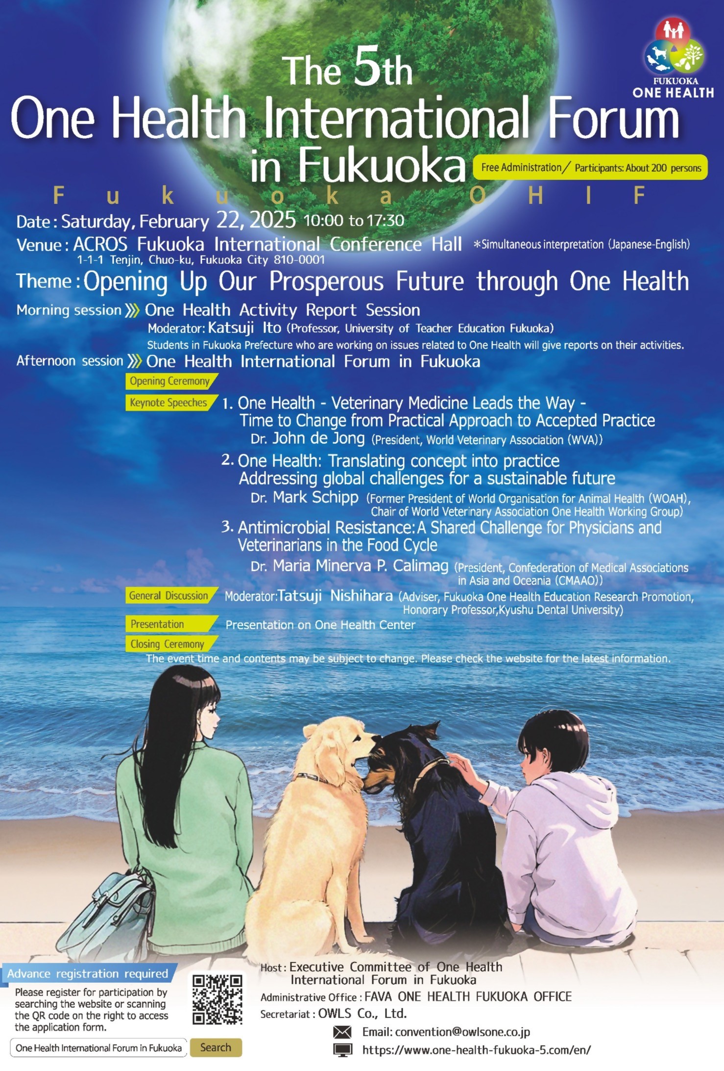 In FY2024, the 5th forum will be held on February 22nd, 2025, in Fukuoka city, and will feature keynote speeches and panel discussions with professionals in One Health, including the President of the World Veterinary Association, the former President of the World Organization for Animal Health, and the President of the Confederation of Medical Associations in Asia and Oceania.